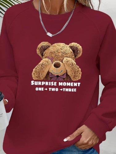 • Kadın uzun kollu bisiklet yaka ayıcık desenli viskon iki iplik bluz