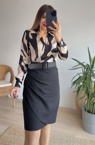 • Kadın uzun kollu yakalı üst dalgıç eteği krep kemerli elbise