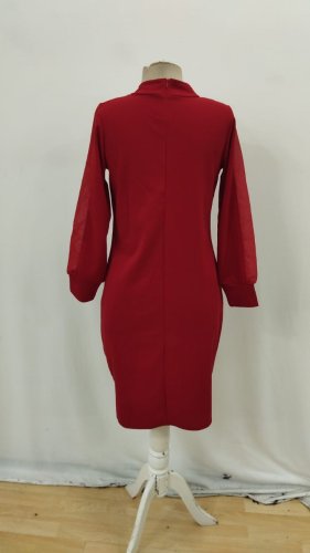 • Kadın uzun kollu yarı balıkçı yaka tül ve inci detaylı kısa ithal krep midi elbise