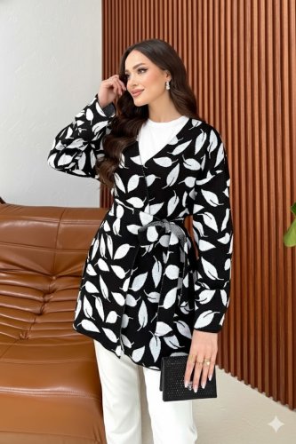 • Kadın uzun kollu Kadın uzun kollu yaprak desen kuşak dahil hırka