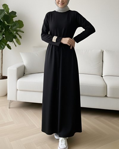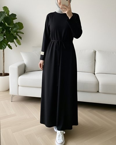 • Yuvarlak Yaka Beli Bağlamalı Oysho Elbise Siyah